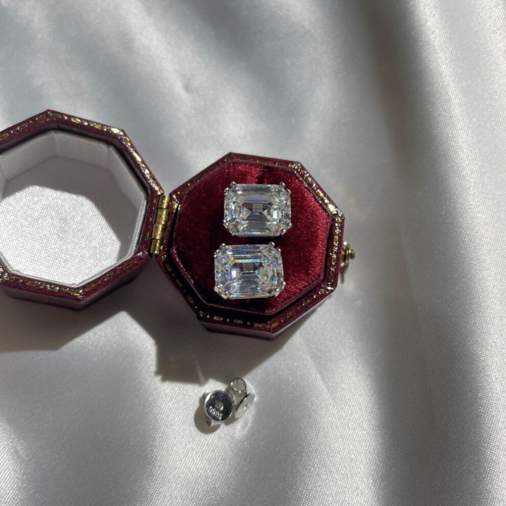 100% 925 Sterling Silver Emerald Cut 4CT High Carbon Diamonds Ear Stud Earrings Wedding Party Jewelry Drop Description