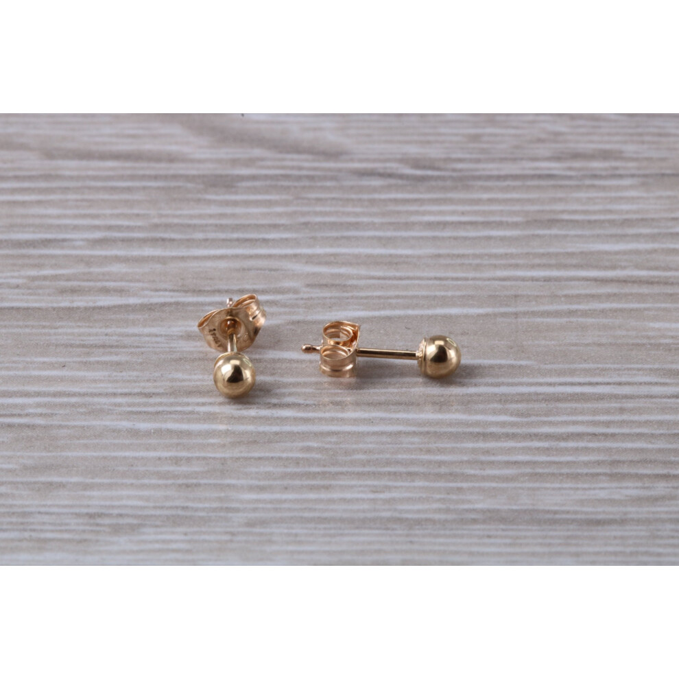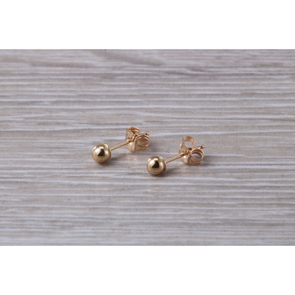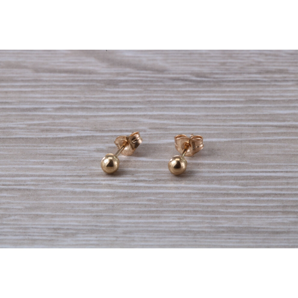 9ct Gold 3 mm Round Ball Stud Earrings Description