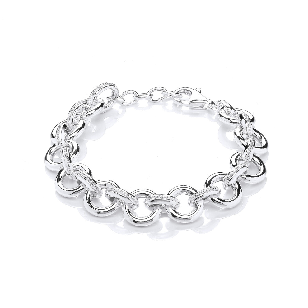 Jewelco London Ladies Rhodium Plated Sterling Silver Rope Donut Belcher Link Chain Bracelet 12mm 7 + 1 inch – GVB475 Description