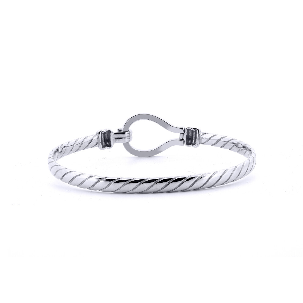 Jewelco London Ladies Rhodium Plated Sterling Silver Rope Stirrup Hook Noose Loop 4mm Bangle Bracelet, 7″ 18cm – ABG065 Description
