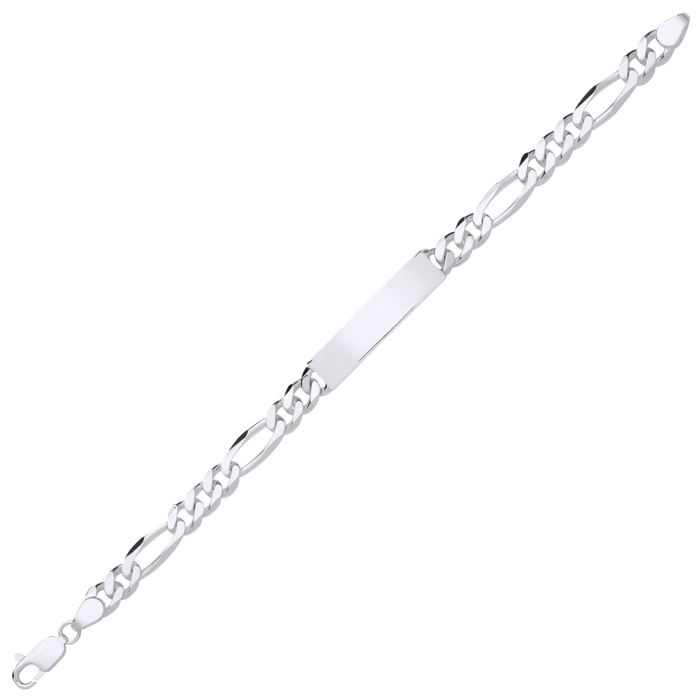 Jewelco London Mens Rhodium Plated Sterling Silver Chunky Figaro Rectangular Bar Identity ID Bracelet 8mm 8.5 inch – ID53 Description