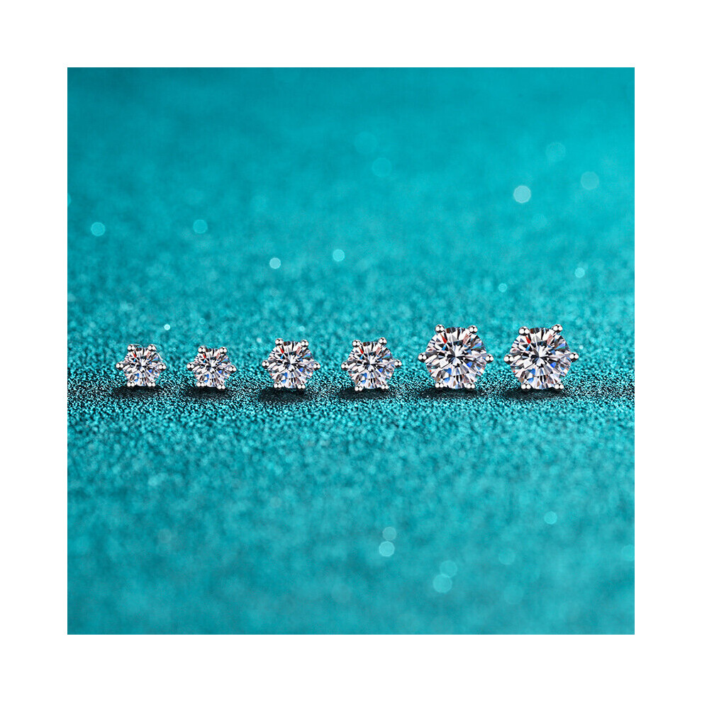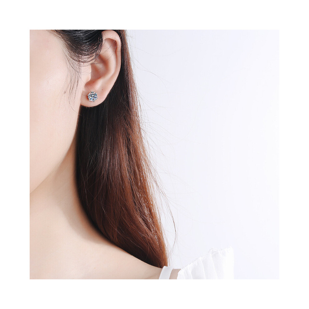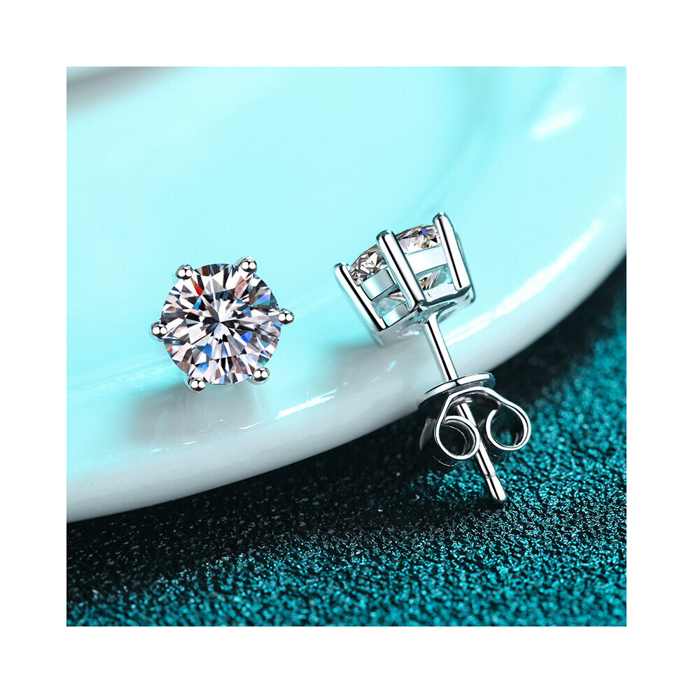 Moissanite Stud Earrings 14K Plated Sterling Silver D VVS1 Lab Diamond 6 Claws Round Ear Studs For Women Description