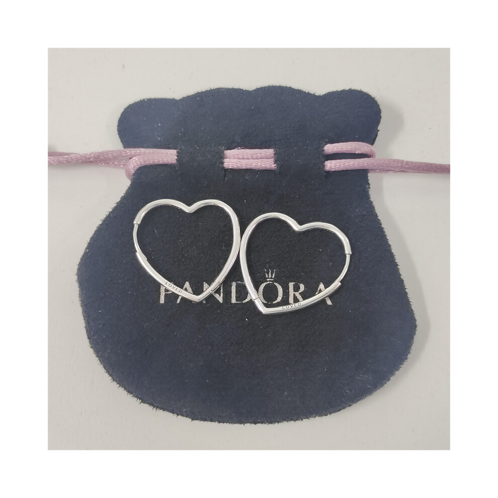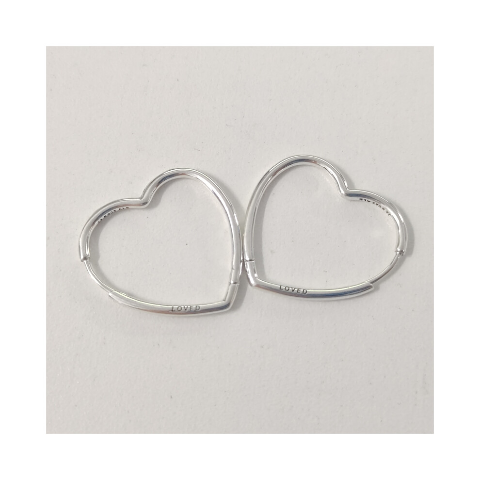 Pandora Sterling Silver Asymmetric Hearts of Love Hoop Earrings Description