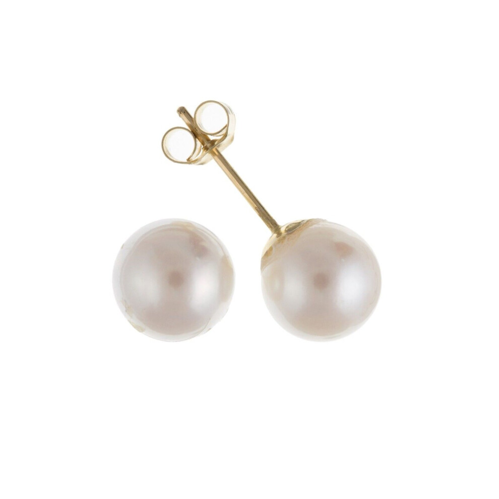 - Pearl Earrings Yellow Gold Studs Solid 9 Carat 6mm Freshwater Pearls Stud