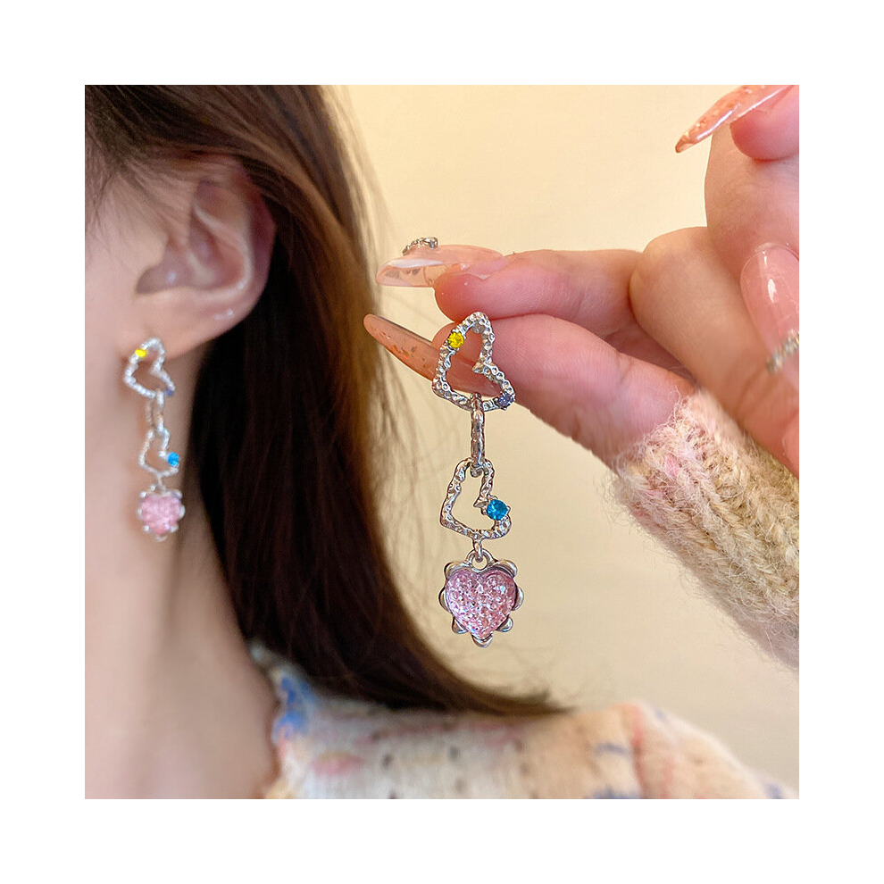These earrings belong to the Korean style category, known for its fresh and sweet aesthetics. They are designed with a distinctive and cool design, making them a perfect choice for those who appreciate unique and offbeat accessories. The S925 Silver Needle Pink Heart Tassel Earrings for Women are suitable for all female fashion enthusiasts, providing a flawless blend of style and elegance.