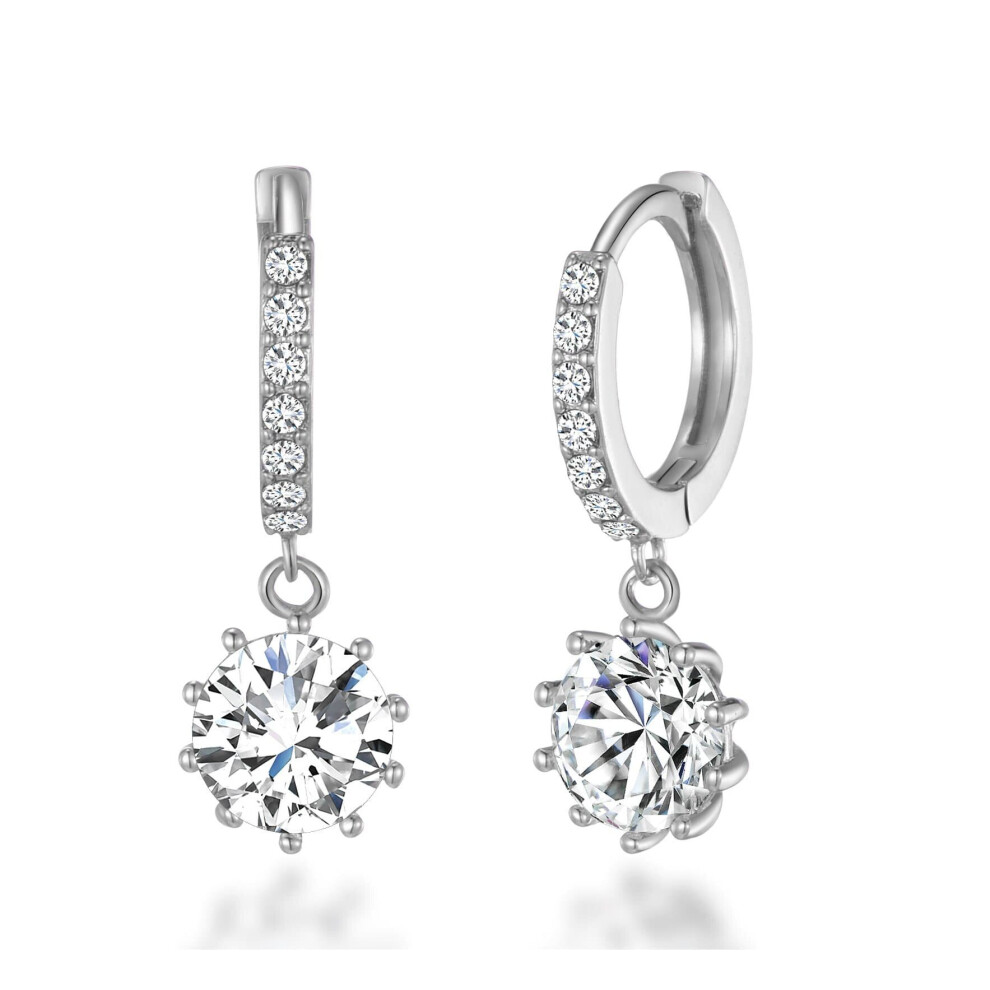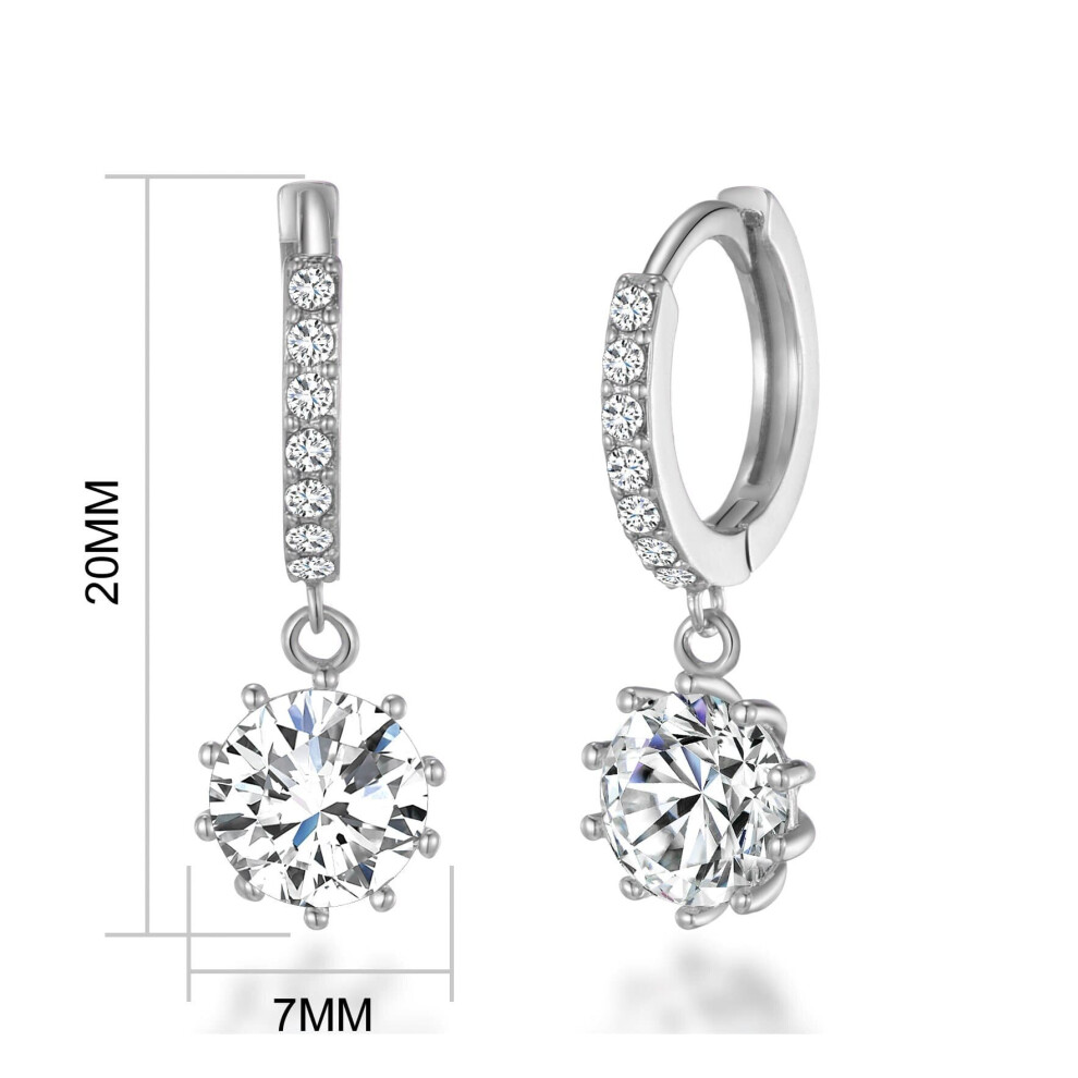 Silver Plated Solitaire Drop Hoop Earrings Created with Swarovski Crystals Description