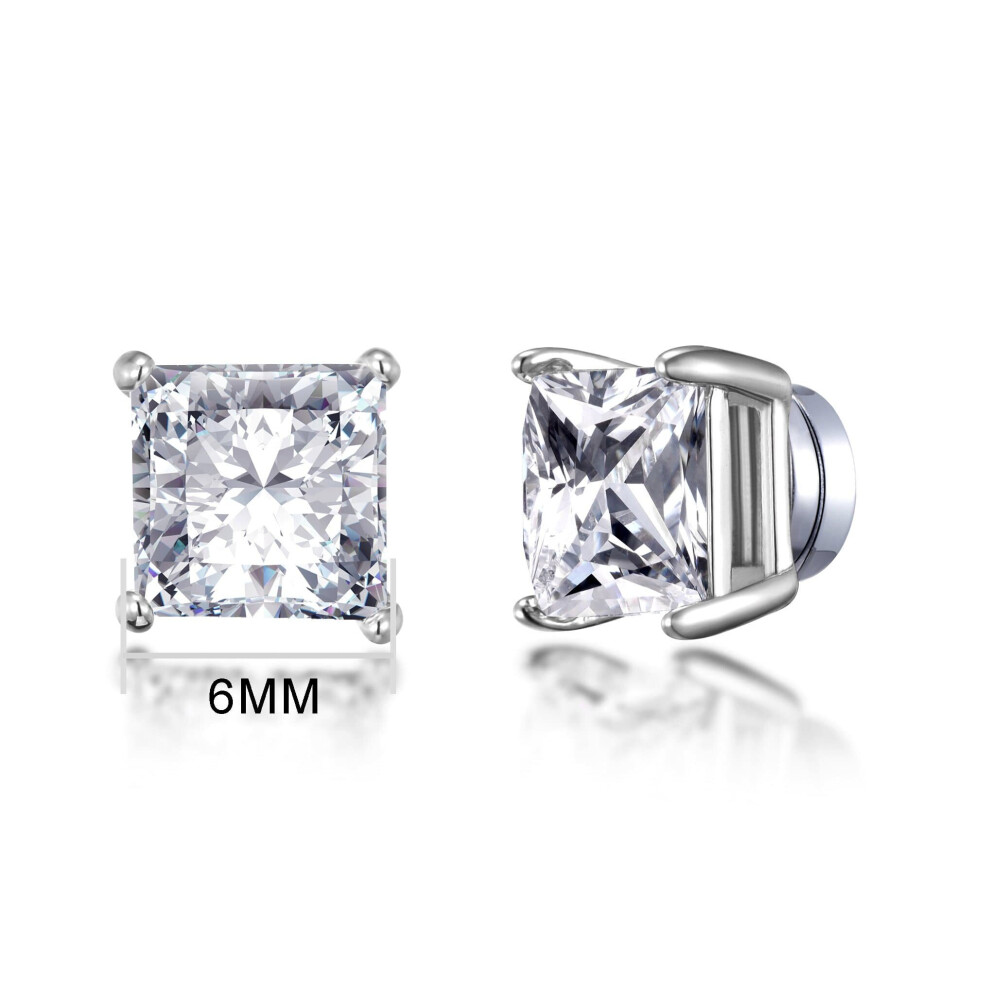 Silver Plated Square Magnetic Clip On Stud Earrings Created with Swarovski Crystals Description