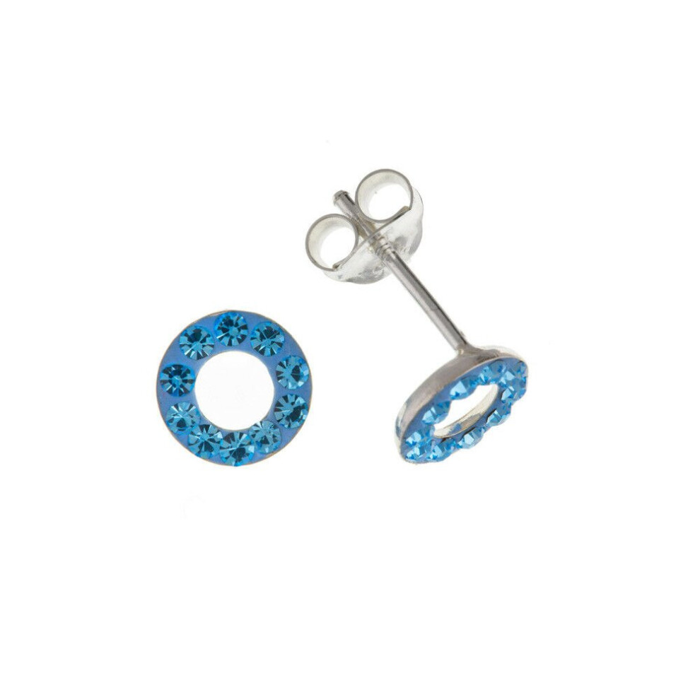 Sterling silver open circle stud earrings 925 hallmarked Set with real blue Austrian crystal Earrings measures approx. 7mm Brand new and boxed. Silver Stud Earrings Blue Austrian Crystal Sterling Silver Studs. Metal: Sterling Silver | Metal Purity:925 parts per 1000. Main Stone: Crystal| Main Stone Colour: Blue | Main Stone Shape: Round. Style: Stud. Fastening: Butterfly.