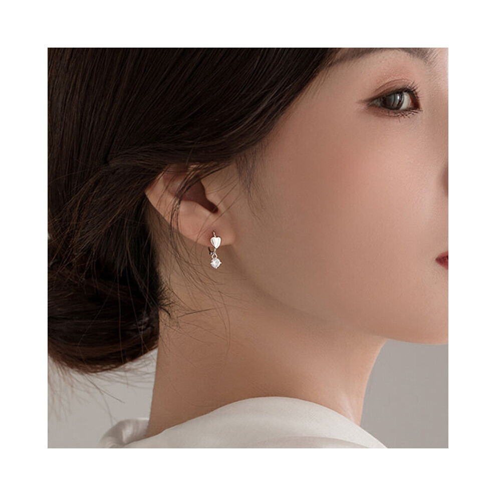 Silver Zircon Tassel Love Heart Hoop Earrings For Women Delicate Sweet Party Jewelry Gift Description