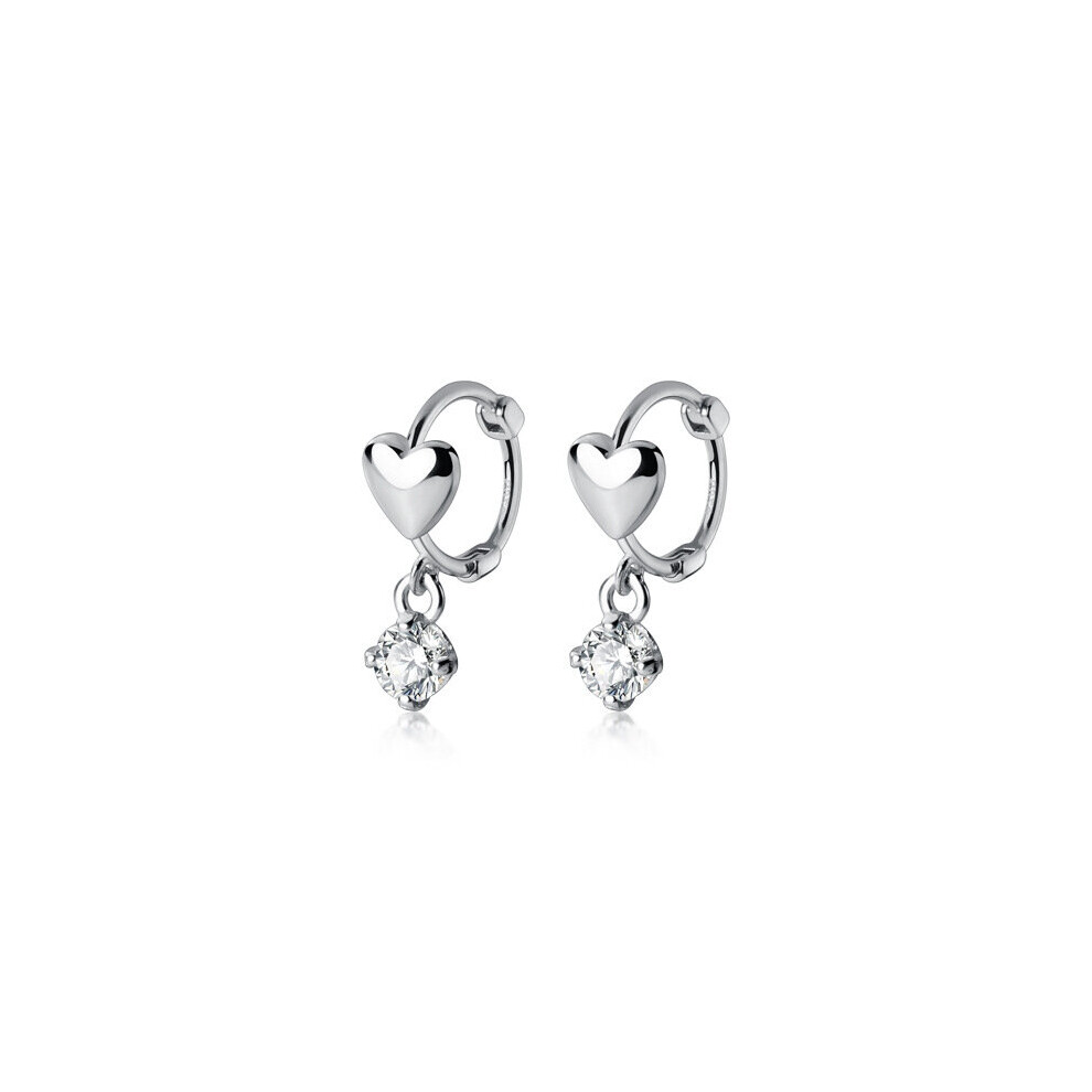 Silver Zircon Tassel Love Heart Hoop Earrings For Women Delicate Sweet Party Jewelry Gift
