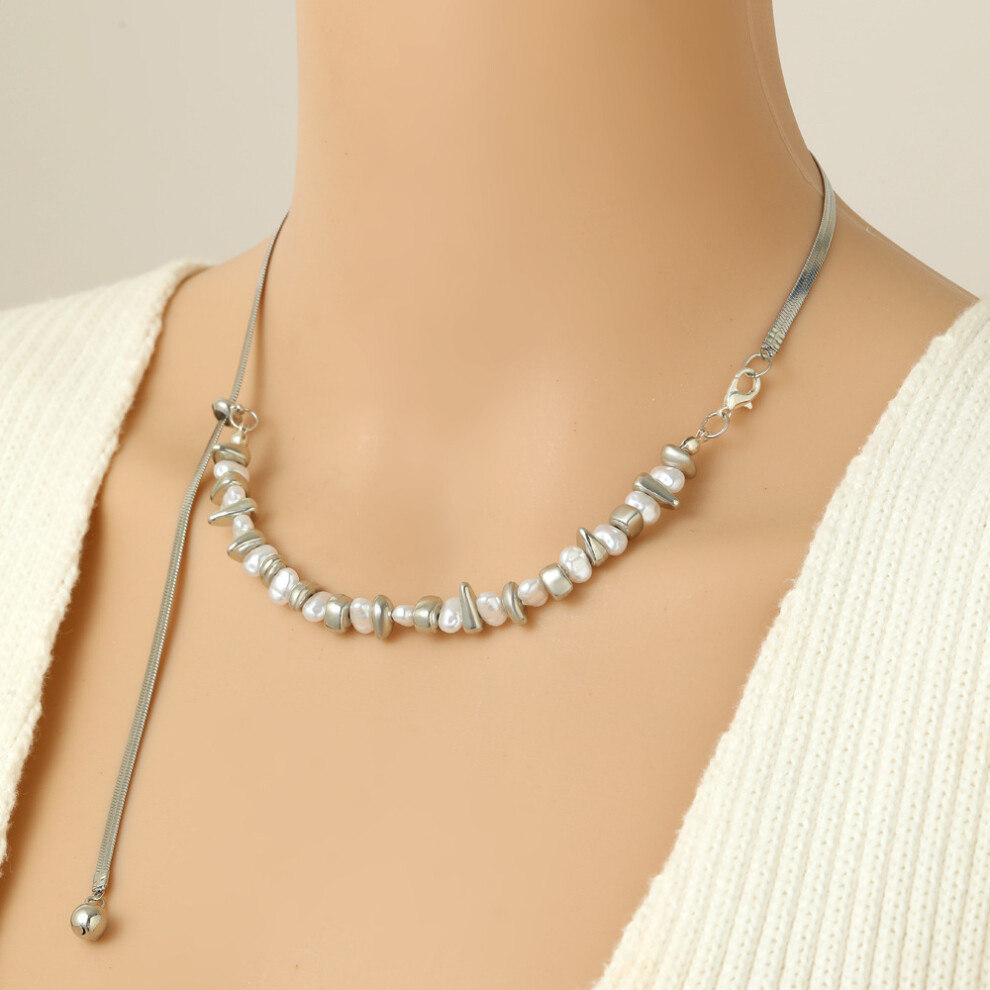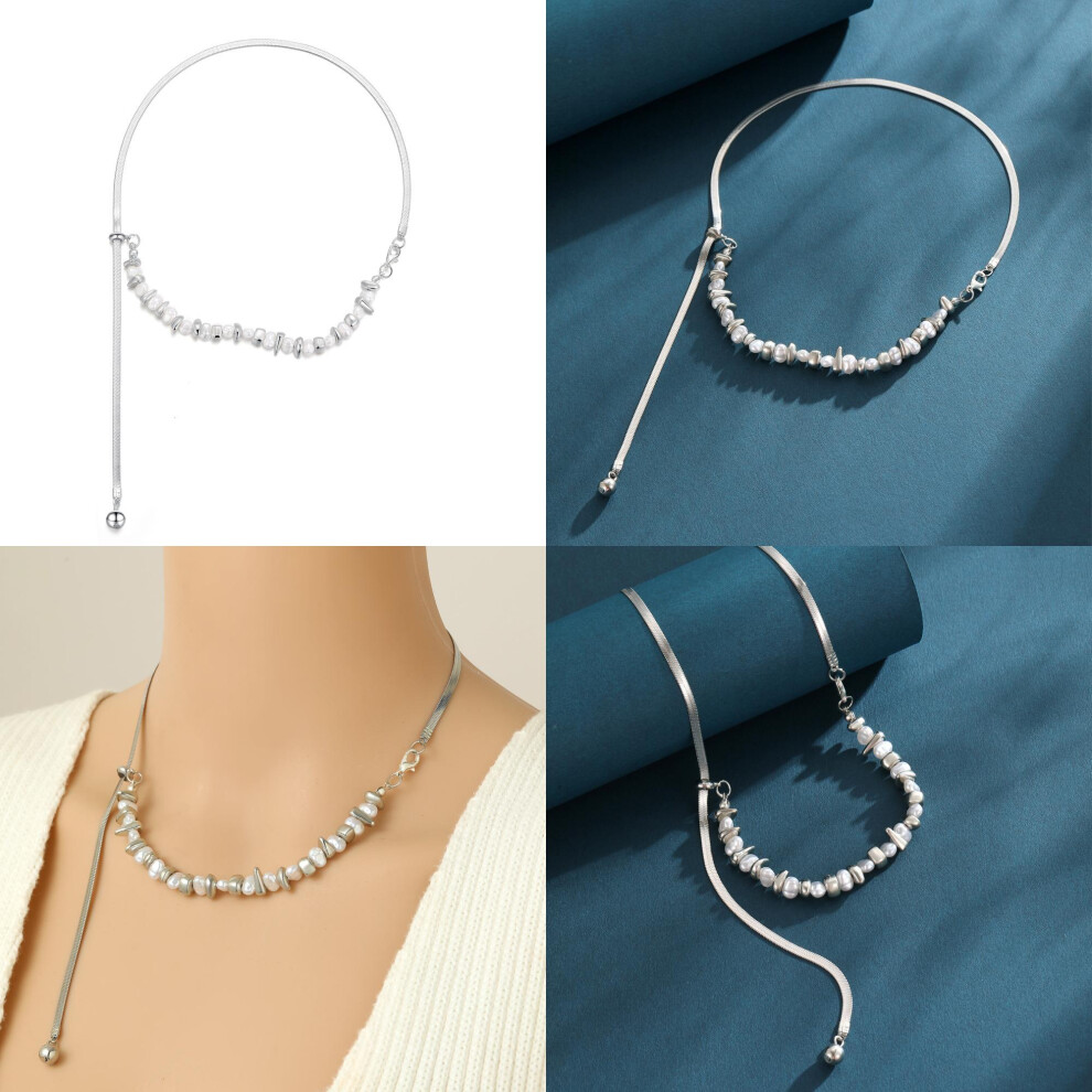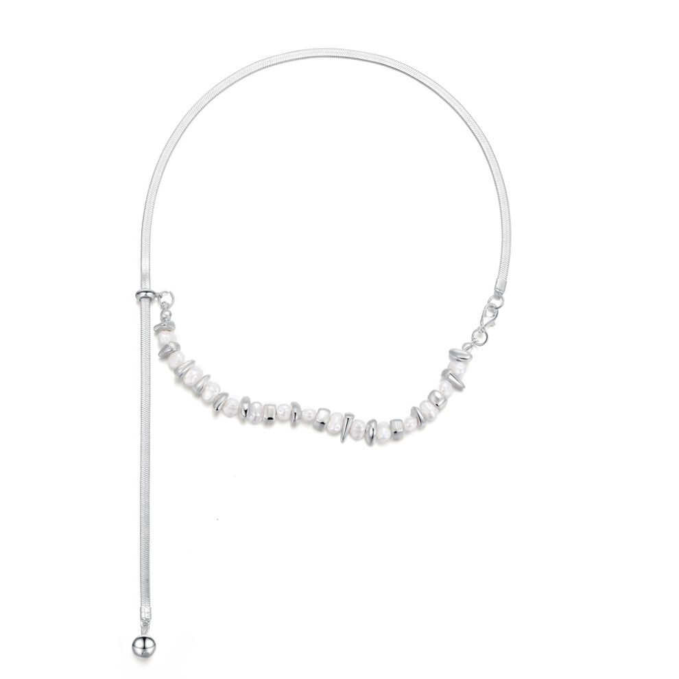 Stylish Irregular Shattered Silver And Pearl Necklace Dazzling Geometric Snake Chain Description